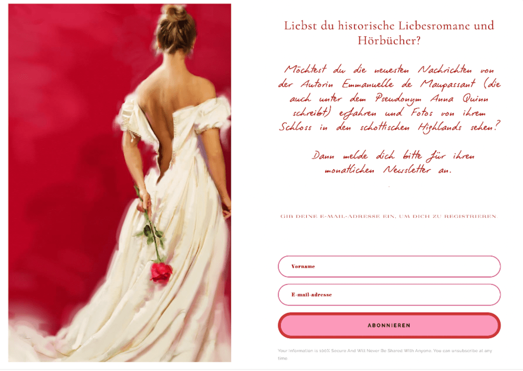 Bekannt ist Emmanuelle auch für die leidenschaftliche historische Liebesromanreihe »Verrucht«, die sie unter dem Pseudonym Anna Quinn schreibt.